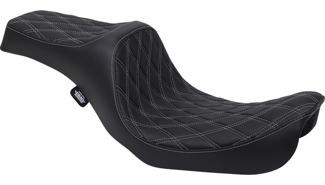 This premium motorcycle seat features a 6-inch tall driver support with a narrow front for improved leg clearance. Made from automotive-grade vinyl and molded polyurethane foam, it provides maximum comfort and durability, with select models offering Slip Stop™ PVC to reduce slippage. Solar-reflective leather in the seating area keeps the seat cooler, while the 3/16” ABS thermoformed base with carpeted bottom and rubber bumpers ensures a perfect fit and paint protection. Includes all mounting hardware and proudly made in the U.S.A.