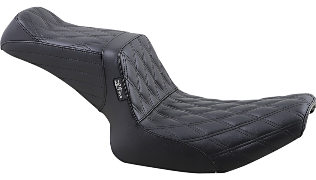 Building on the Kickflip design, this seat features a whipped-up tail that enhances both passenger comfort and style. It is constructed with molded Marathon Foam and a custom BikerTec cover, paired with a highly detailed, powder-coated steel base that is carpeted to protect painted surfaces. Family owned and operated, the seat is proudly made in the USA.